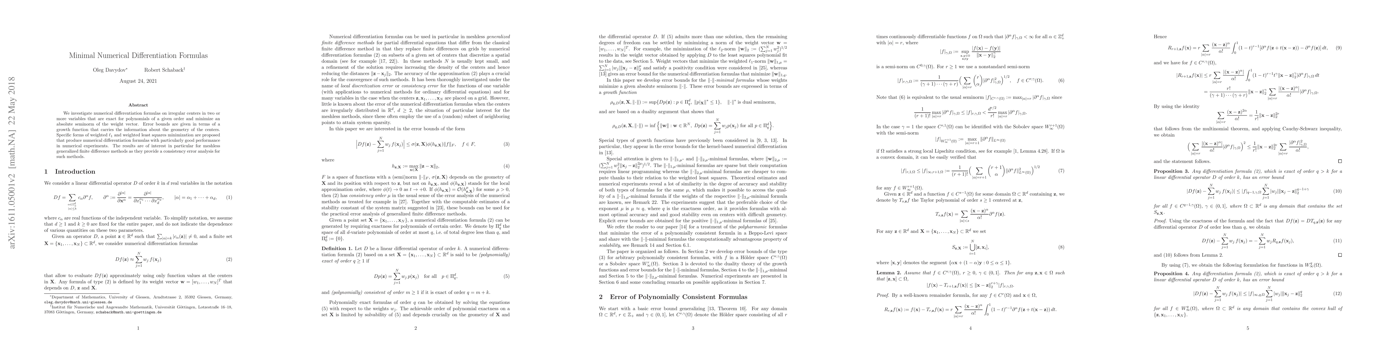 This paper explores numerical differentiation formulas on irregular centers that are exact for polynomials of a specified order and minimize an absolute seminorm of the weight vector. It proposes specific weighted $\ell_1$ and least squares minimization forms that yield effective results in numerical experiments.