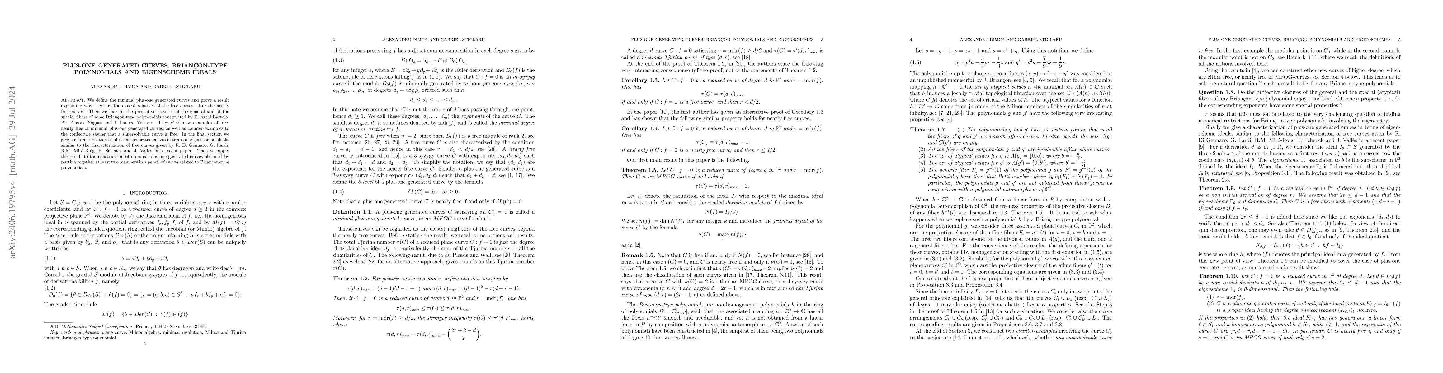 We define the minimal plus-one generated curves and prove a result explaining why they are the closest relatives of the free curves, after the nearly free curves. Then we look at the projective closures of the general and of the special fibers of some Brian\c{c}on-type polynomials constructed by E. Artal Bartolo, Pi. Cassou-Nogu\`es and I. Luengo Velasco. They yield new examples of free, nearly free or minimal plus-one generated curves. This leads us to ask the natural question if such a result holds for any Brian\c{c}on-type polynomials.