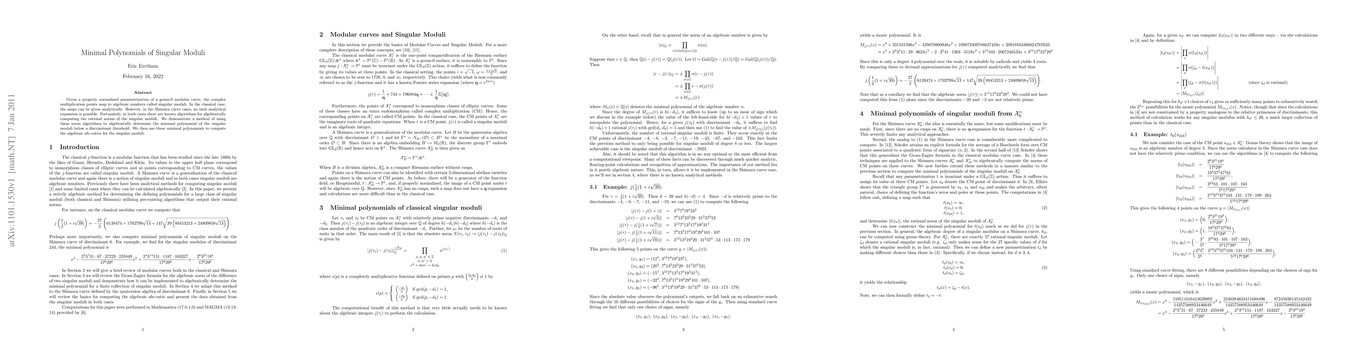 The paper presents a method to algebraically determine the minimal polynomial of singular moduli below a discriminant threshold using norm algorithms, applicable in both classical and Shimura curve cases.