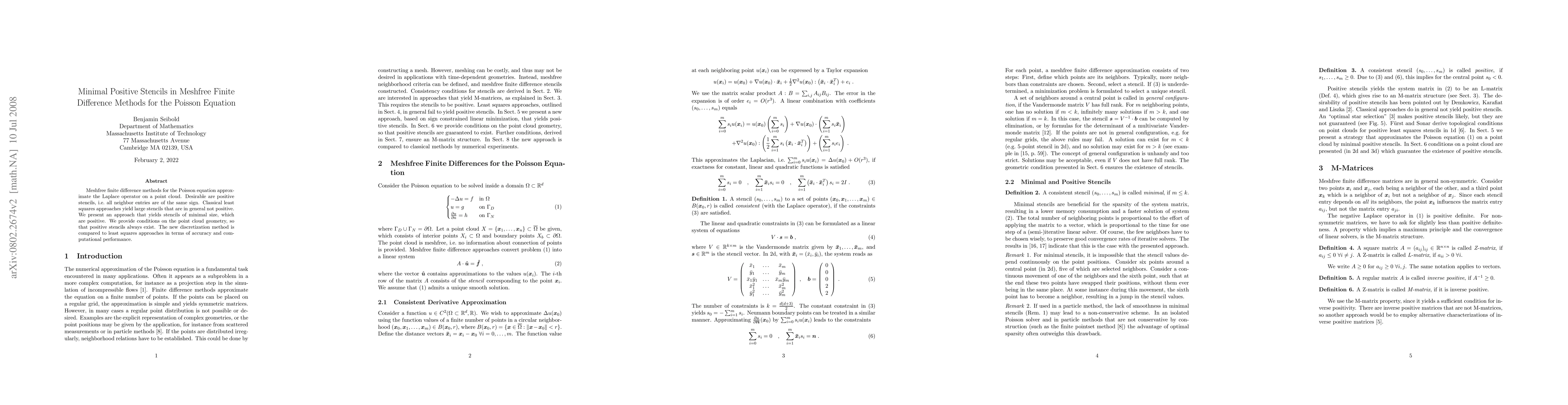This paper presents a novel method for generating minimal positive stencils in meshfree finite difference methods for solving the Poisson equation, ensuring all neighbor entries are of the same sign. It compares the new discretization method's accuracy and computational performance to classical least squares approaches.