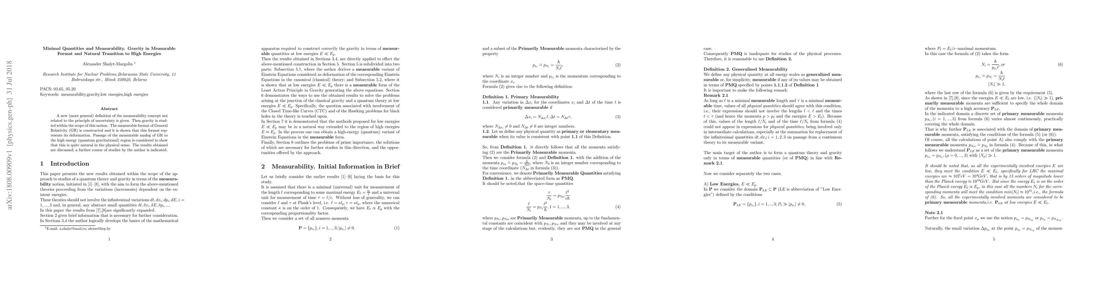 Researchers introduce a new definition of measurability that allows gravity to be studied in a measurable format using General Relativity. They show that this approach naturally leads to high-energy (quantum gravitational) regions.