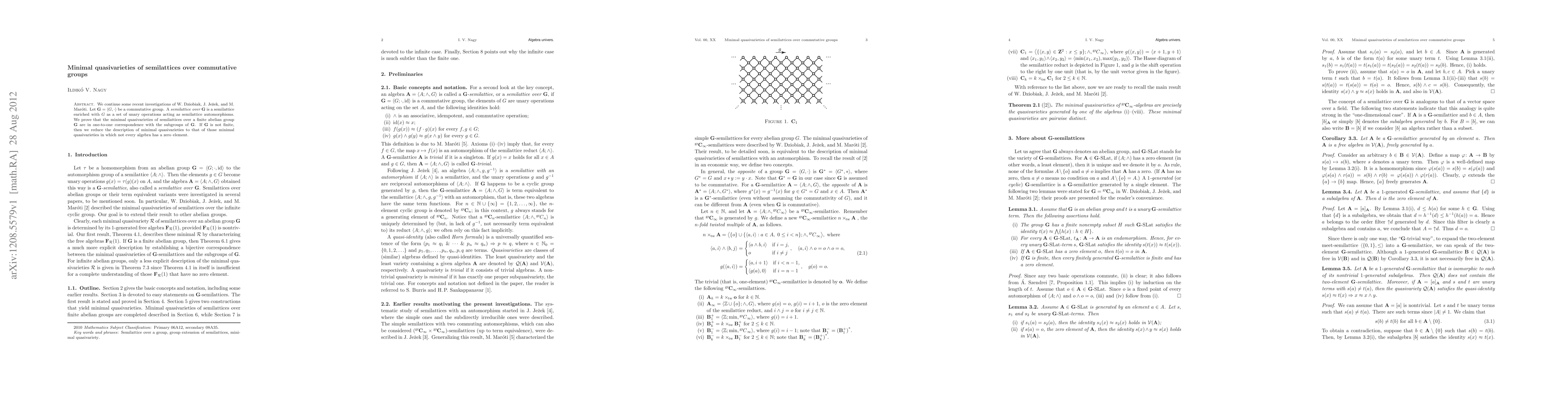 This paper investigates semilattices over commutative groups, proving that minimal quasivarieties over a finite abelian group correspond to its subgroups. For non-finite groups, it simplifies the description of minimal quasivarieties by focusing on those without a zero element.