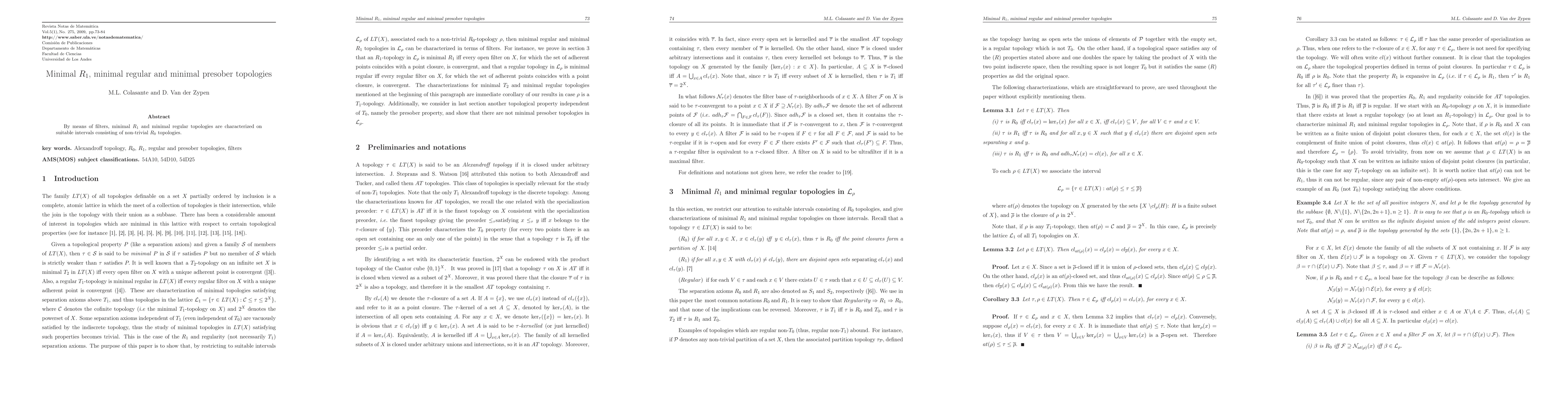 By means of filters, minimal R_1 and minimal regular topologies are characterized on suitable intervals consisting of non-trivial R_0 topologies.