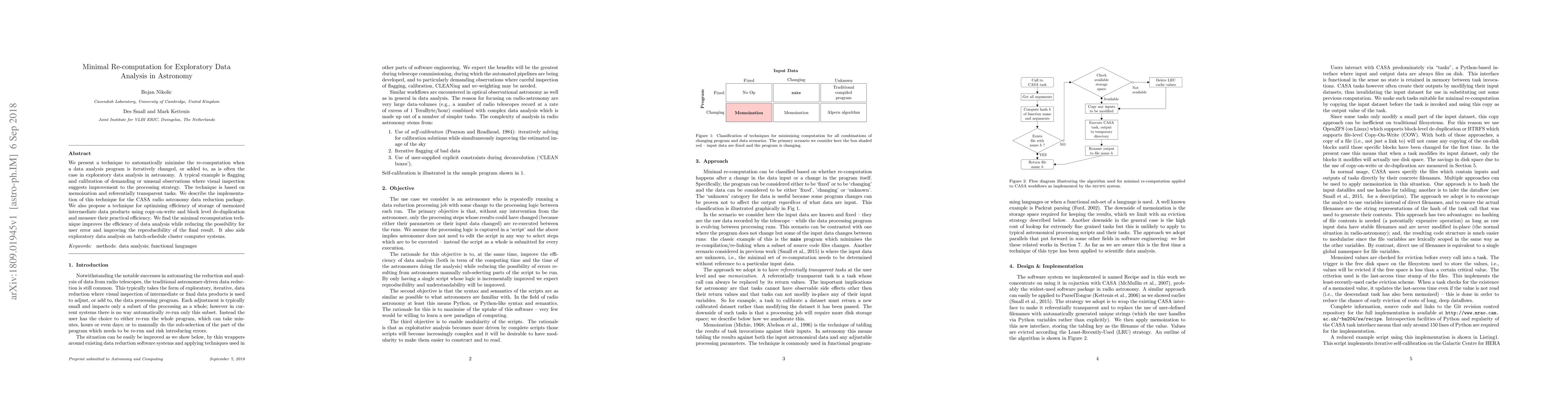 We present a technique to automatically minimise the re-computation when a data analysis program is iteratively changed, or added to, as is often the case in exploratory data analysis in astronomy. A typical example is flagging and calibration of demanding or unusual observations where visual inspection suggests improvement to the processing strategy. The technique is based on memoization and referentially transparent tasks. We describe the implementation of this technique for the CASA radio astronomy data reduction package. We also propose a technique for optimising efficiency of storage of memoized intermediate data products using copy-on-write and block level de-duplication and measure their practical efficiency. We find the minimal recomputation technique improves the efficiency of data analysis while reducing the possibility for user error and improving the reproducibility of the final result. It also aids exploratory data analysis on batch-schedule cluster computer systems.