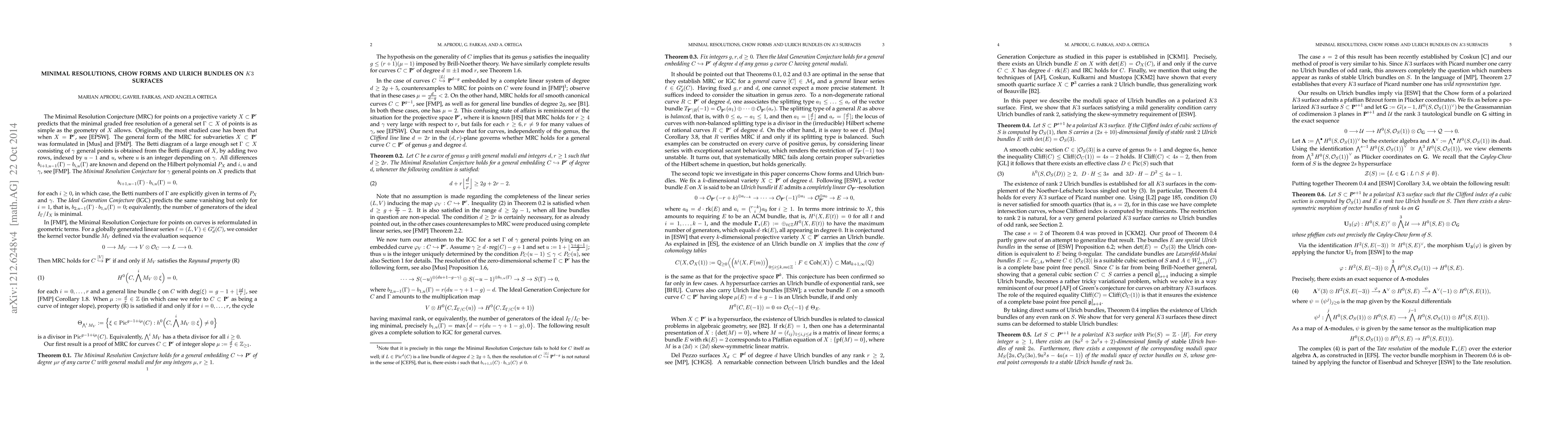 The Minimal Resolution Conjecture (MRC) for points on a projective variety X predicts that the Betti numbers of general sets of points in X are as small as the geometry (Hilbert function) of X allows. To a large extent, we settle this conjecture for a curve C with general moduli. We show that, independently of the genus, MRC holds for a general linear system of degree d and dimension r on C if and only if d>2r-1. We then proceed to find a full solution to the Ideal Generation Conjecture for curves with general moduli. In a different direction, we prove that K3 surfaces admit Ulrich bundles of every rank. We apply this to describe a pfaffian equation for the Chow form of a K3 surface.