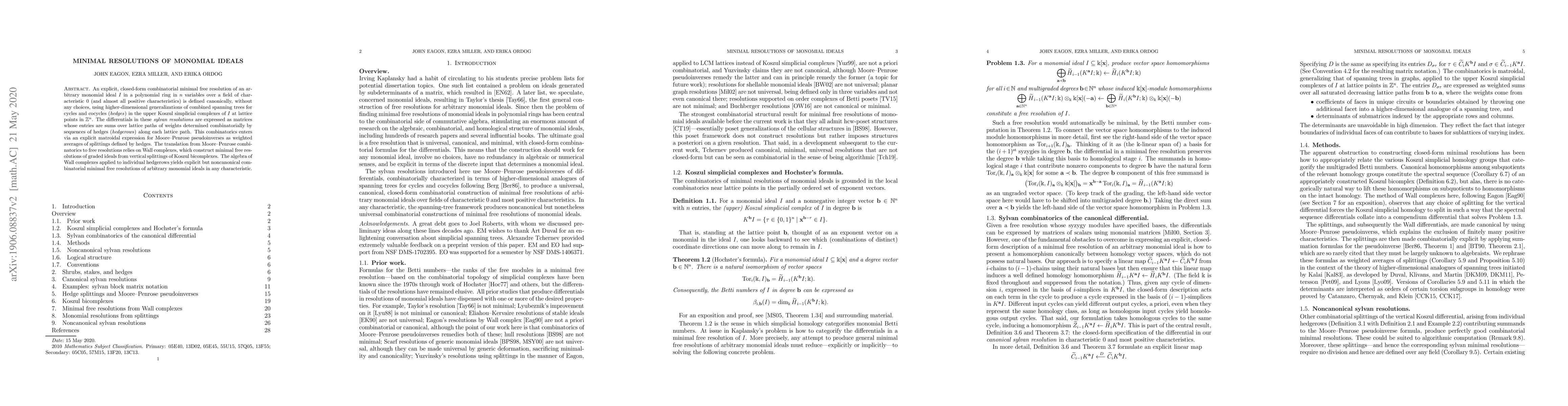 An explicit combinatorial minimal free resolution of an arbitrary monomial ideal $I$ in a polynomial ring in $n$ variables over a field of characteristic $0$ is defined canonically, without any choices, using higher-dimensional generalizations of combined spanning trees for cycles and cocycles ("hedges") in the upper Koszul simplicial complexes of $I$ at lattice points in $\mathbb{Z}^n$. The differentials in these "sylvan resolutions" are expressed as matrices whose entries are sums over lattice paths of weights determined combinatorially by sequences of hedges ("hedgerows") along each lattice path. This combinatorics enters via an explicit matroidal expression for the Moore-Penrose pseudoinverses of the differentials in any CW complex as weighted averages of splittings defined by hedges. This "Hedge Formula" also yields a projection formula from CW chains to boundaries. The translation from Moore-Penrose combinatorics to free resolutions relies on Wall complexes, which construct minimal free resolutions of graded ideals from vertical splittings of Koszul bicomplexes. The algebra of Wall complexes applied to individual hedgerows yields explicit but noncanonical combinatorial minimal free resolutions of arbitrary monomial ideals in any characteristic.
