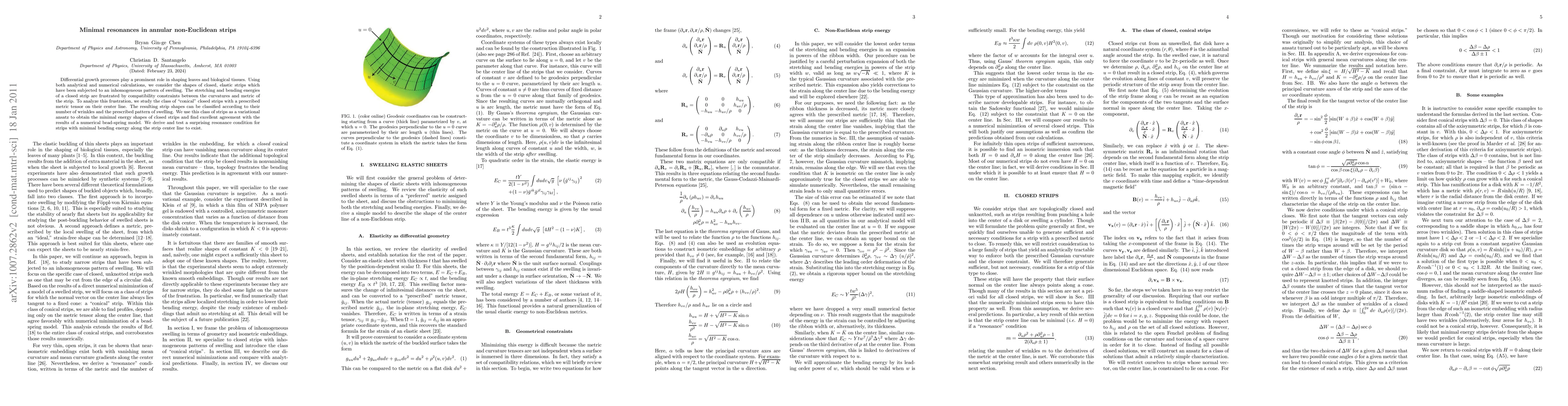 Researchers study how elastic strips with inhomogeneous swelling patterns can have minimal energy shapes, finding a condition for vanishing mean curvature along the center line.