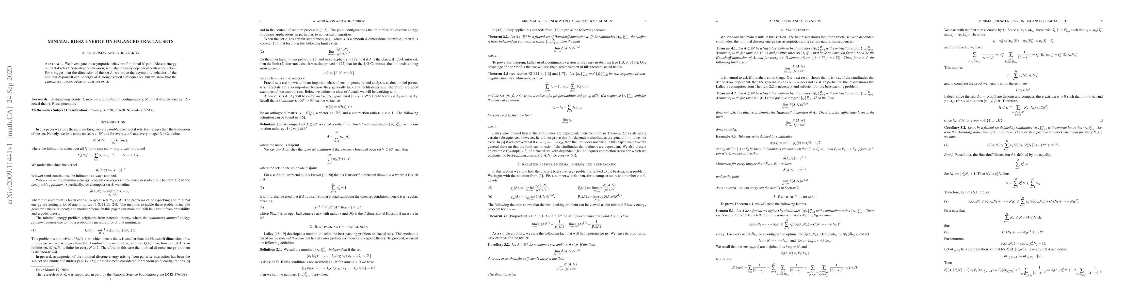 Researchers investigated the behavior of minimal N-point Riesz s-energy on fractal sets with non-integer dimension, finding that general asymptotic behavior does not exist, but explicit subsequences can be analyzed for larger s values.
