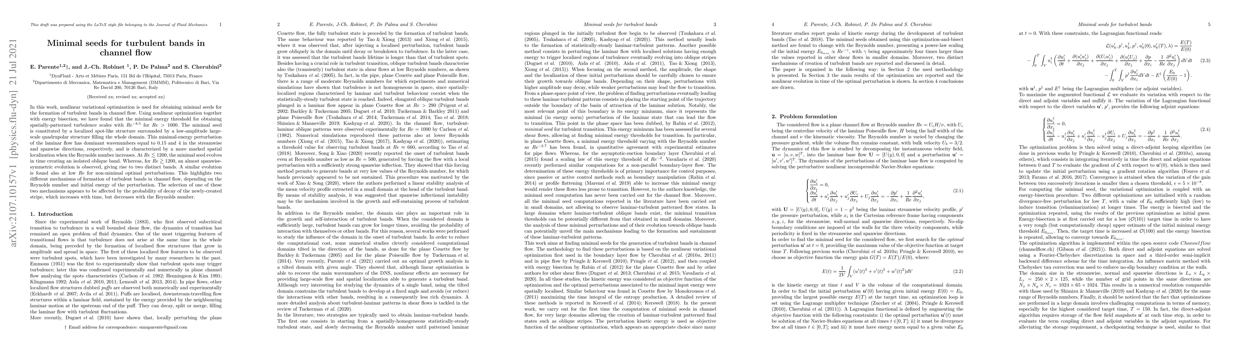 Researchers found that minimal seeds for turbulent bands in channel flow can create two different types of bands depending on the Reynolds number and initial energy of the perturbation.