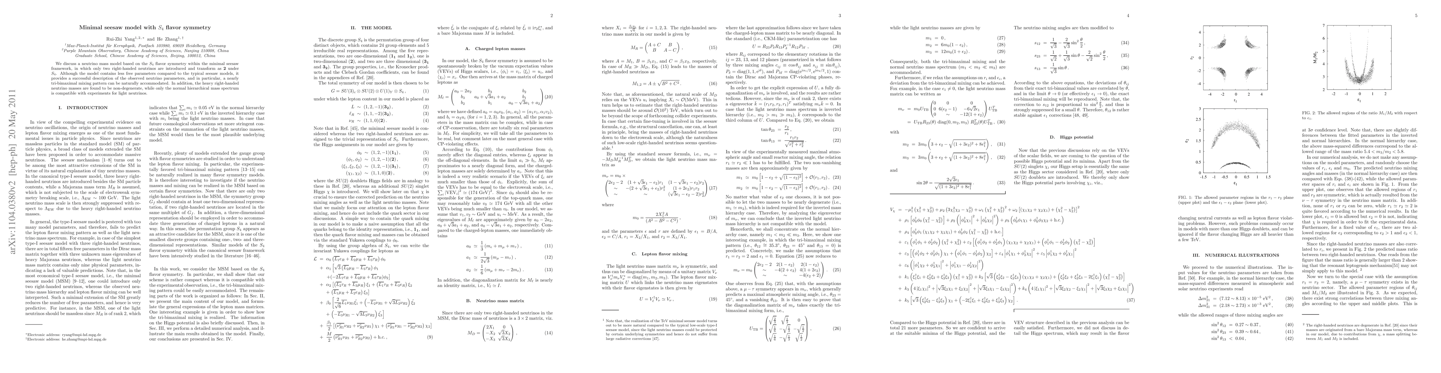 This paper proposes a minimal seesaw model utilizing S_4 flavor symmetry that introduces only two right-handed neutrinos, yielding a nearly tri-bimaximal mixing pattern and a normal hierarchical mass spectrum for light neutrinos, while avoiding excessive free parameters.
