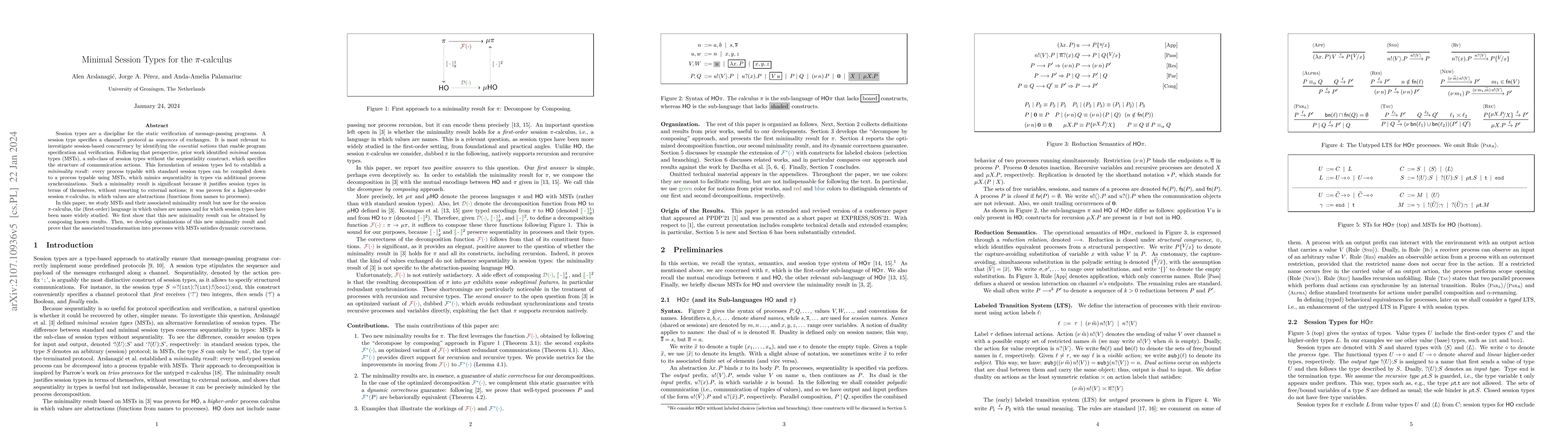 Session types are a discipline for the static verification of message-passing programs. A session type specifies a channel's protocol as sequences of exchanges. It is most relevant to investigate session-based concurrency by identifying the essential notions that enable program specification and verification. Following that perspective, prior work identified minimal session types (MSTs), a sub-class of session types without the sequentiality construct, which specifies the structure of communication actions. This formulation of session types led to establish a minimality result: every process typable with standard session types can be compiled down to a process typable using MSTs, which mimics sequentiality in types via additional process synchronizations. Such a minimality result is significant because it justifies session types in terms of themselves, without resorting to external notions; it was proven for a higher-order session pi-calculus, in which values are abstractions (functions from names to processes). In this paper, we study MSTs and their associated minimality result but now for the session pi-calculus, the (first-order) language in which values are names and for which session types have been more widely studied. We first show that this new minimality result can be obtained by composing known results. Then, we develop optimizations of this new minimality result and prove that the associated transformation into processes with MSTs satisfies dynamic correctness.