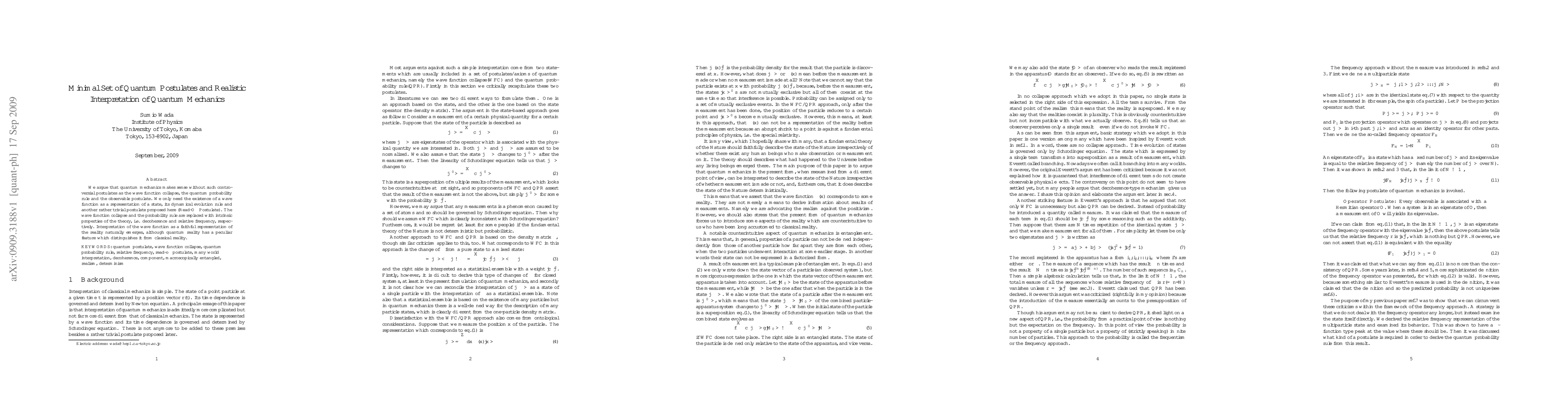 This paper proposes a minimal set of quantum postulates that eliminates the need for controversial concepts like wave function collapse and quantum probability, instead relying on the wave function's representation, its evolution, and a new Read-Off Postulate. It interprets quantum mechanics through decoherence and relative frequency, asserting a realistic interpretation of the wave function.