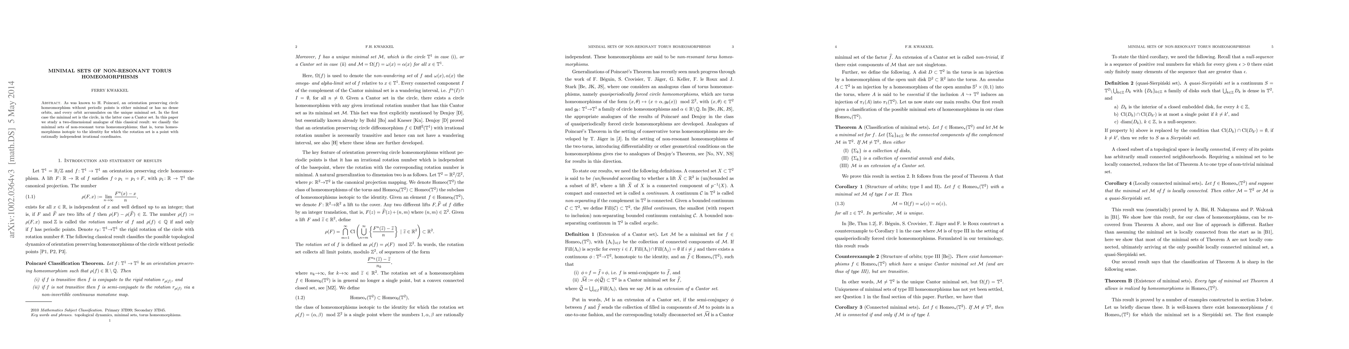 This paper classifies the minimal sets of non-resonant torus homeomorphisms, extending Poincaré's classical result on circle homeomorphisms to two dimensions. It focuses on homeomorphisms with irrational rotation sets, determining the structure of their minimal sets.