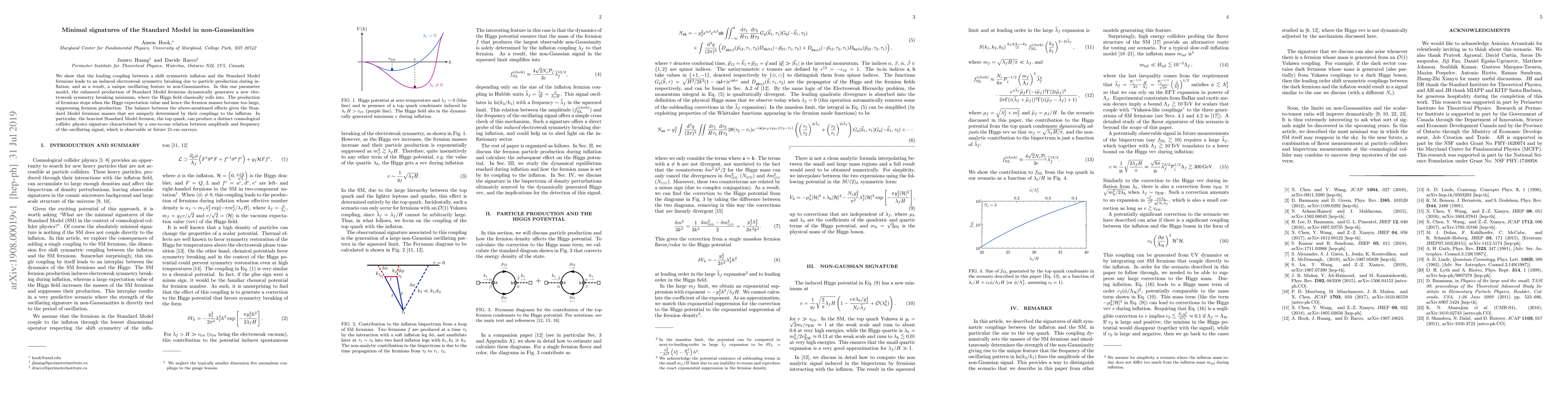 We show that the leading coupling between a shift symmetric inflaton and the Standard Model fermions leads to an induced electroweak symmetry breaking due to particle production during inflation, and as a result, a unique oscillating feature in non-Gaussianities. In this one parameter model, the enhanced production of Standard Model fermions dynamically generates a new electroweak symmetry breaking minimum, where the Higgs field classically rolls into. The production of fermions stops when the Higgs expectation value and hence the fermion masses become too large, suppressing fermion production. The balance between the above-mentioned effects gives the Standard Model fermions masses that are uniquely determined by their couplings to the inflaton. In particular, the heaviest Standard Model fermion, the top quark, can produce a distinct cosmological collider physics signature characterised by a one-to-one relation between amplitude and frequency of the oscillating signal, which is observable at future 21-cm surveys.