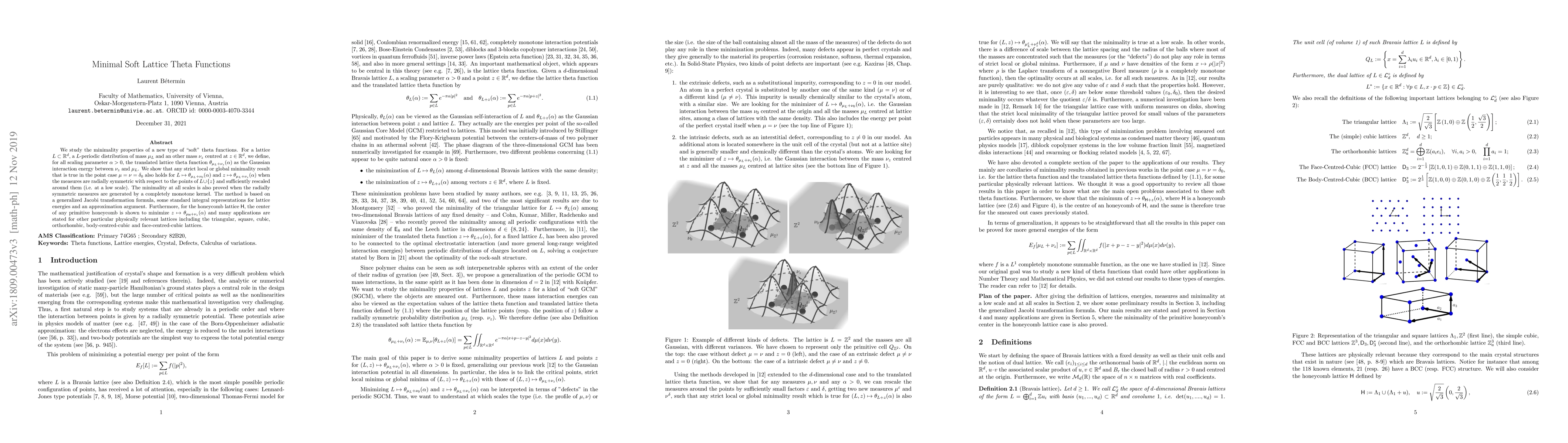 This paper explores the minimality properties of "soft" theta functions defined as Gaussian interaction energies between lattice-periodic distributions and point masses. It proves that minimality results for point masses extend to these functions under radial symmetry and rescaling, with applications to various physically relevant lattices.
