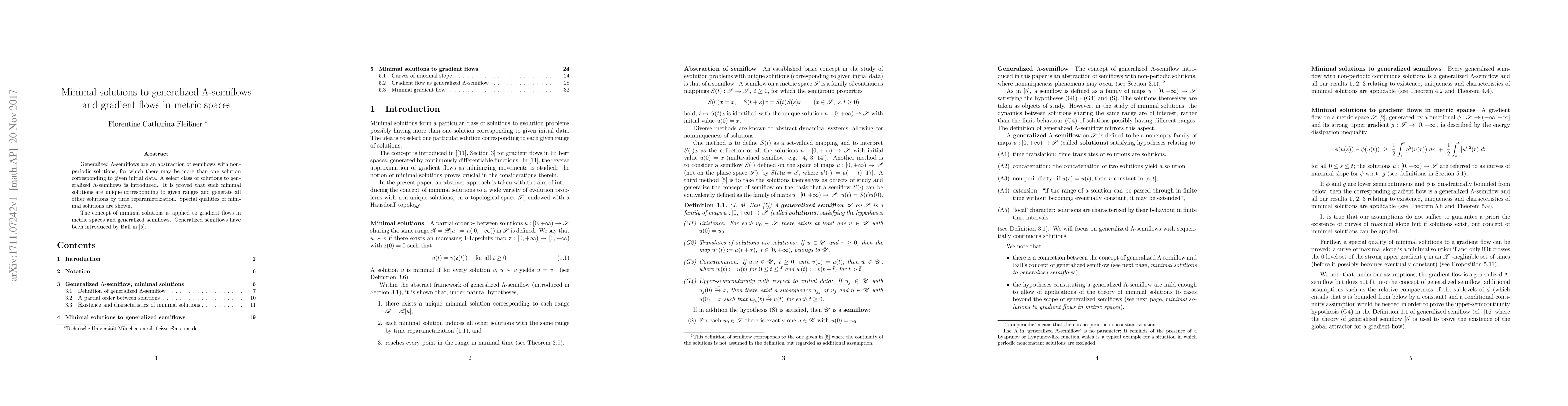 Generalized Lambda-semiflows are an abstraction of semiflows with non-periodic solutions, for which there may be more than one solution corresponding to given initial data. A select class of solutions to generalized Lambda-semiflows is introduced. It is proved that such minimal solutions are unique corresponding to given ranges and generate all other solutions by time reparametrization. Special qualities of minimal solutions are shown. The concept of minimal solutions is applied to gradient flows in metric spaces and generalized semiflows. Generalized semiflows have been introduced by Ball.