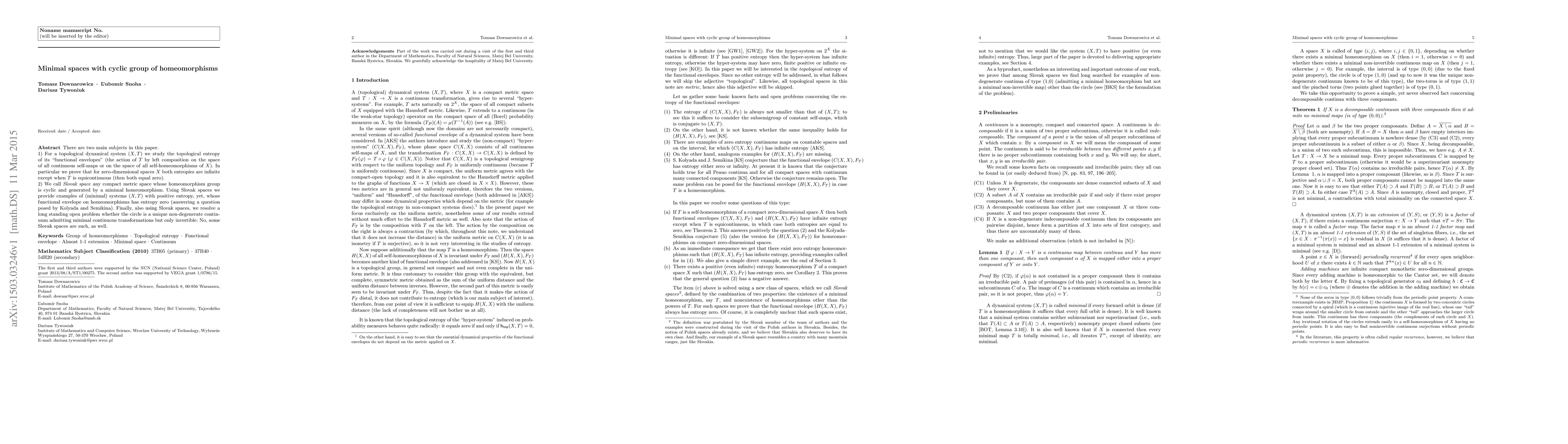There are two main subjects in this paper. 1) For a topological dynamical system $(X,T)$ we study the topological entropy of its "functional envelopes" (the action of $T$ by left composition on the space of all continuous self-maps or on the space of all self-homeomorphisms of $X$). In particular we prove that for zero-dimensional spaces $X$ both entropies are infinite except when $T$ is equicontinuous (then both equal zero). 2) We call $Slovak$ $space$ any compact metric space whose homeomorphism group is cyclic and generated by a minimal homeomorphism. Using Slovak spaces we provide examples of (minimal) systems $(X,T)$ with positive entropy, yet, whose functional envelope on homeomorphisms has entropy zero (answering a question posed by Kolyada and Semikina). Finally, also using Slovak spaces, we resolve a long standing open problem whether the circle is a unique non-degenerate continuum admitting minimal continuous transformations but only invertible: No, some Slovak spaces are such, as well.
