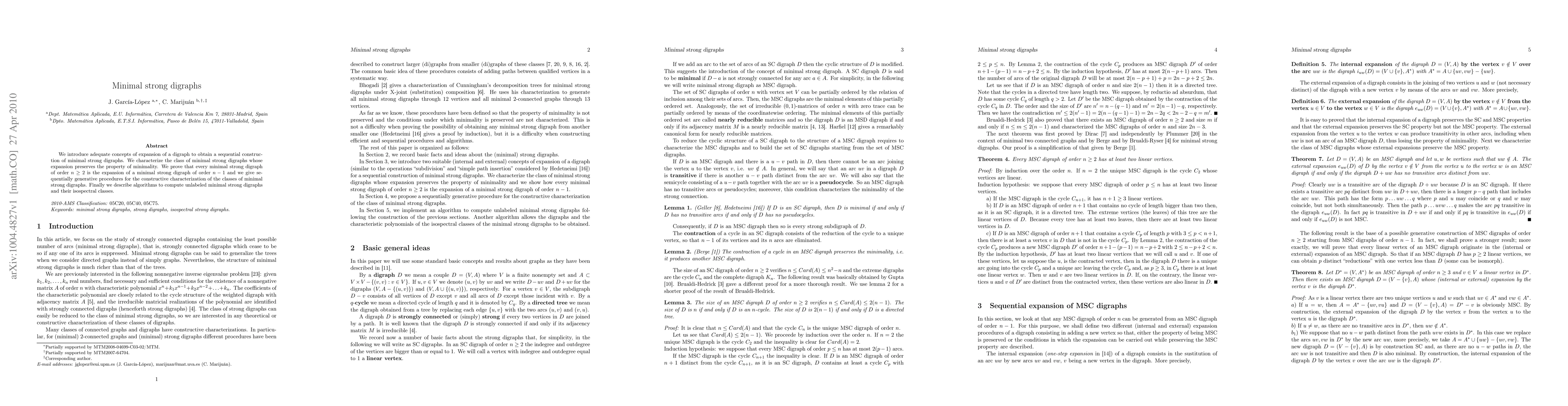 This paper introduces methods to construct minimal strong digraphs through expansion, proving that every minimal strong digraph of order $n\geq 2$ can be derived from one of order $n-1$. It also provides algorithms for computing these digraphs and their isospectral classes.