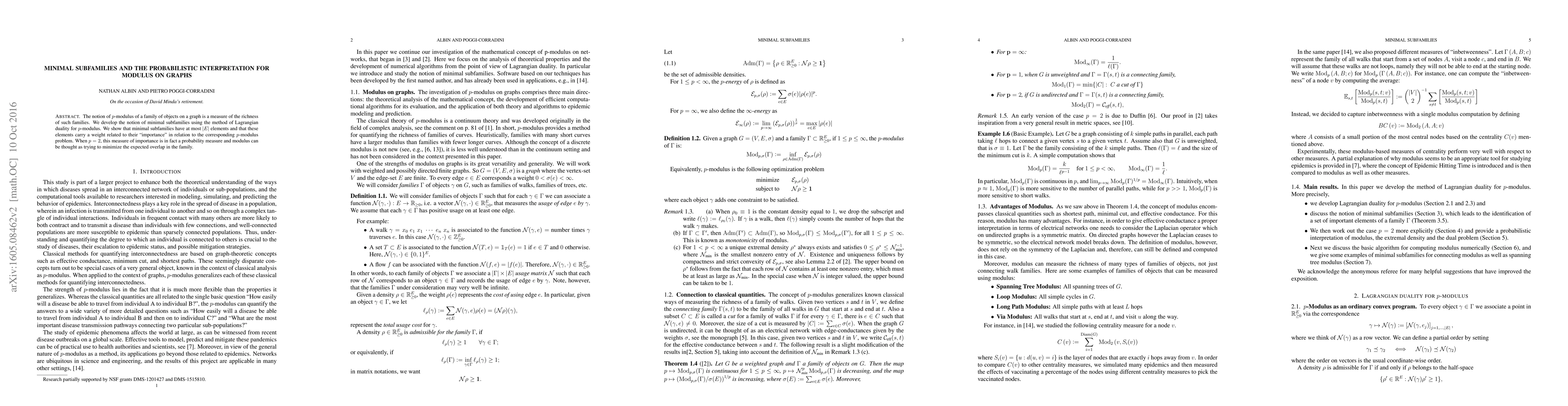 Researchers developed a method to analyze families of objects on graphs using minimal subfamilies, which have at most |E| elements that carry weight related to their importance in the family's p-modulus problem.