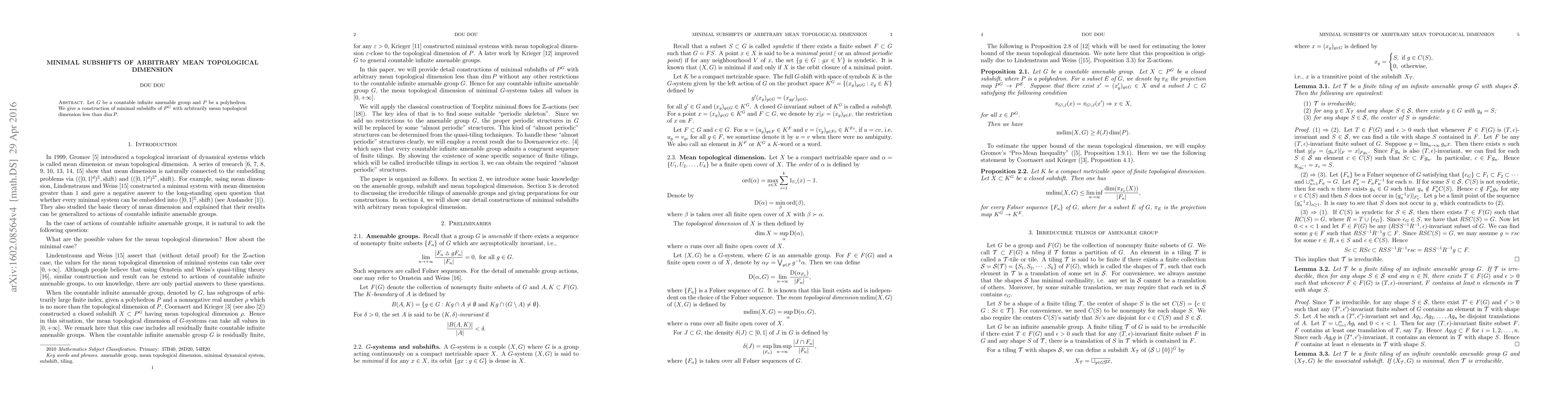 Summary: This paper constructs minimal subshifts for polyhedra over countable infinite amenable groups with mean topological dimensions that can be arbitrarily close to but less than the dimension of the polyhedron. The construction demonstrates the flexibility in achieving various mean topological dimensions.