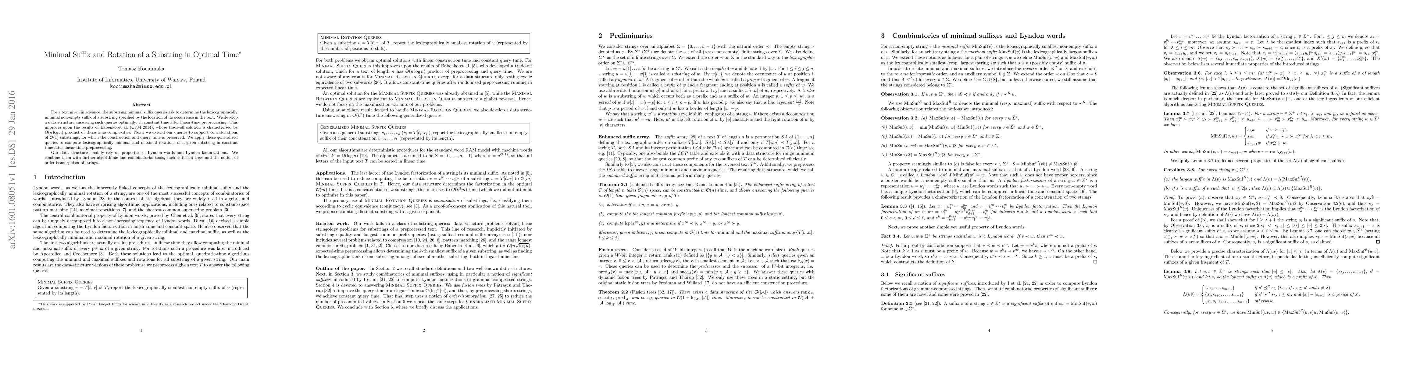This paper presents a data structure that answers lexicographically minimal suffix queries on a given text in constant time after linear-time preprocessing, improving upon previous results. It also extends the queries to handle concatenations of substrings and computes minimal and maximal rotations efficiently.