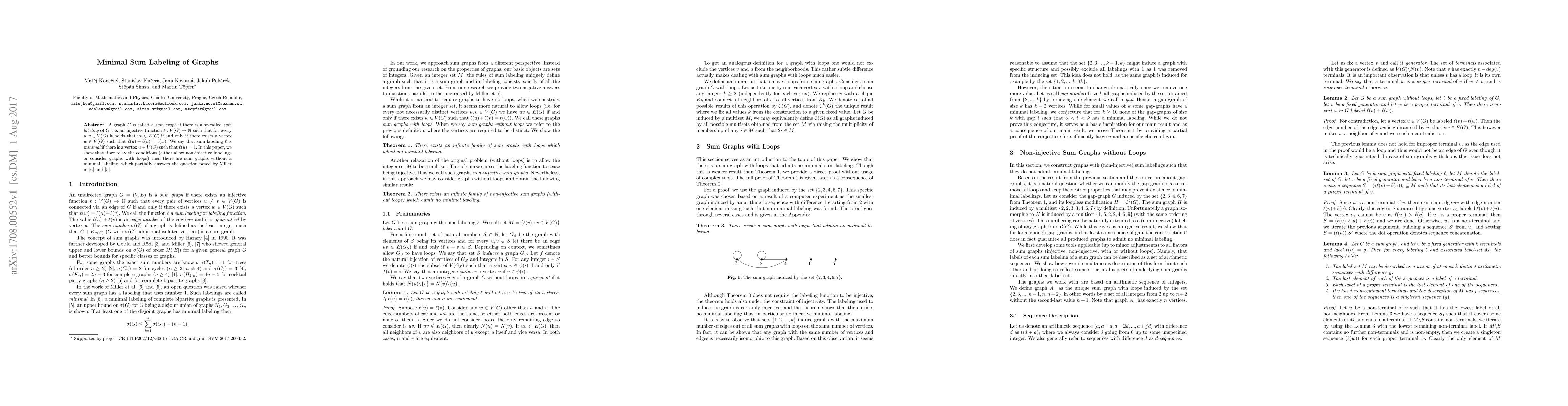 This paper investigates minimal sum labeling of graphs, where a sum labeling is minimal if it assigns the smallest possible label to at least one vertex. The authors demonstrate that relaxing the labeling conditions can result in sum graphs lacking minimal labeling, addressing a question from Miller, Ryan, and Smyth in 1998.