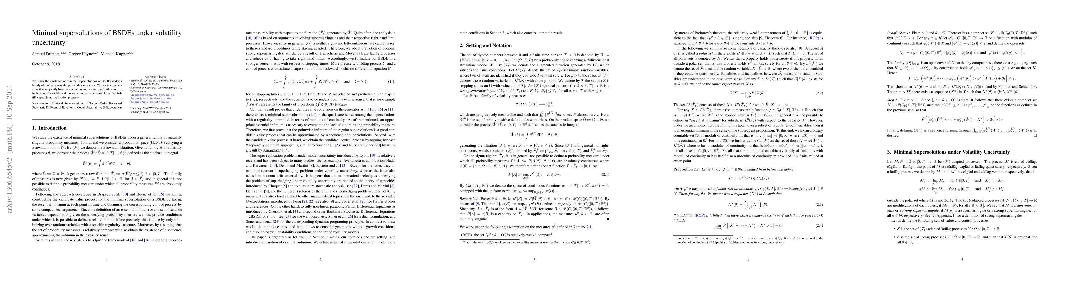 This paper investigates the existence of minimal supersolutions for stochastic differential equations (BSDEs) under uncertainty about volatility, focusing on specific generator conditions that ensure lower semicontinuity and monotonicity. The study aims to provide a deeper understanding of BSDEs in scenarios where volatility is uncertain.