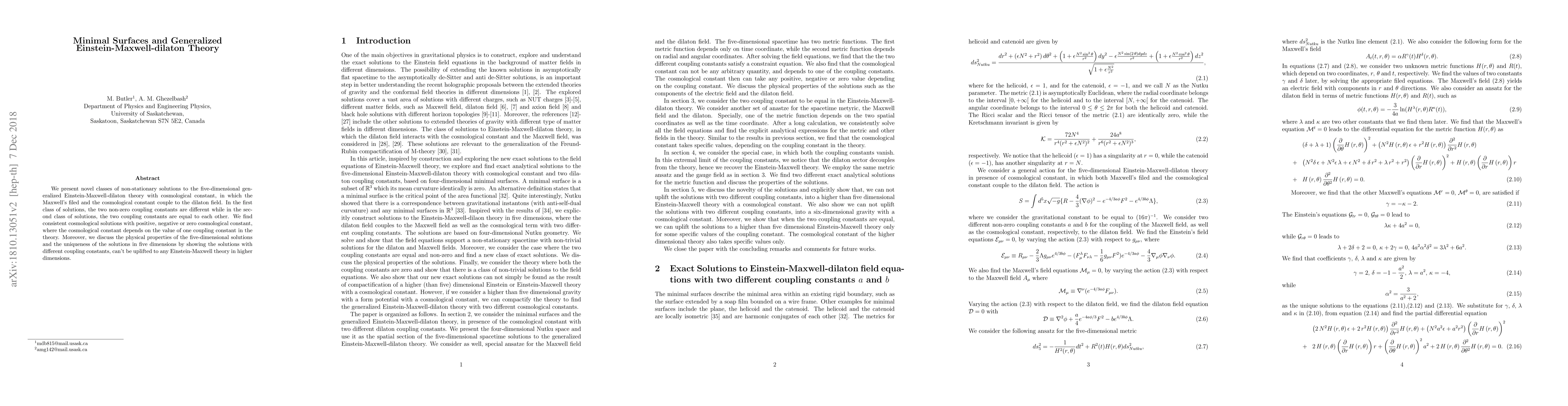This paper introduces new non-stationary solutions to five-dimensional generalized Einstein-Maxwell-dilaton theory, distinguishing between solutions with unequal and equal coupling constants. It finds consistent cosmological solutions with varying cosmological constants, and demonstrates the uniqueness of these solutions in five dimensions.