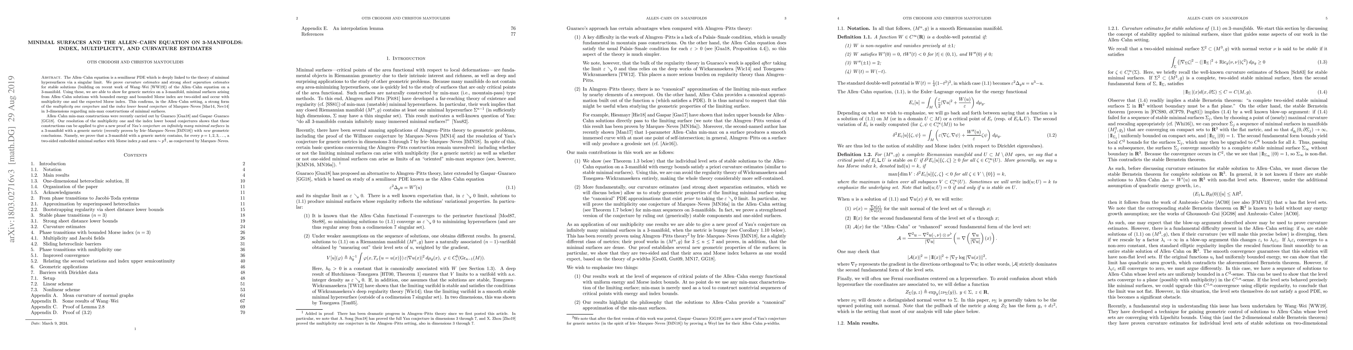 This paper proves curvature and separation estimates for stable solutions of the Allen-Cahn equation on 3-manifolds, confirming the multiplicity one and index lower bound conjectures for minimal surfaces arising from these solutions. It also provides a new proof for Yau's conjecture on infinitely many minimal surfaces in 3-manifolds with generic metrics.