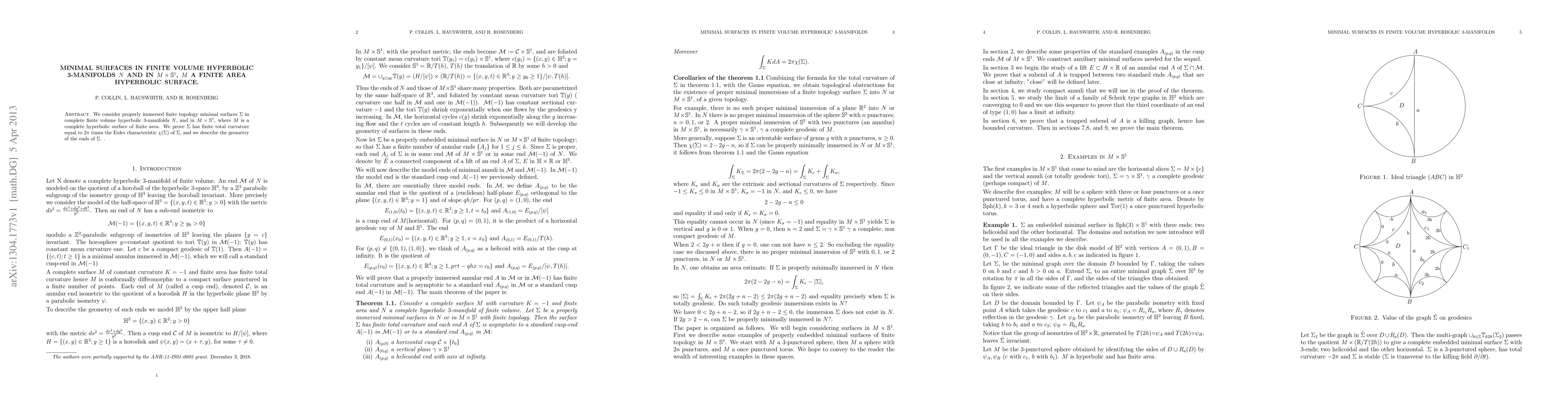 This paper studies properly immersed minimal surfaces in hyperbolic 3-manifolds N and in M x S(1), proving they have finite total curvature equal to 2π times the Euler characteristic of the surface, and describes the geometry of the ends of these surfaces.