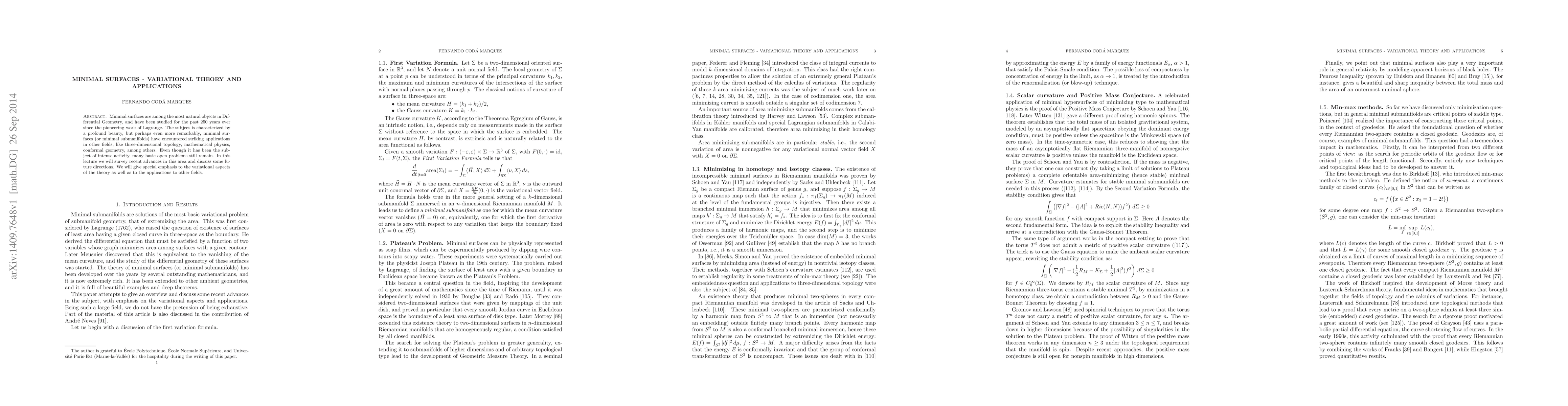This lecture surveys recent advances in minimal surface theory, focusing on variational aspects and applications to fields like topology, physics, and geometry. Despite intense activity, many basic open problems remain in the field of minimal surfaces.
