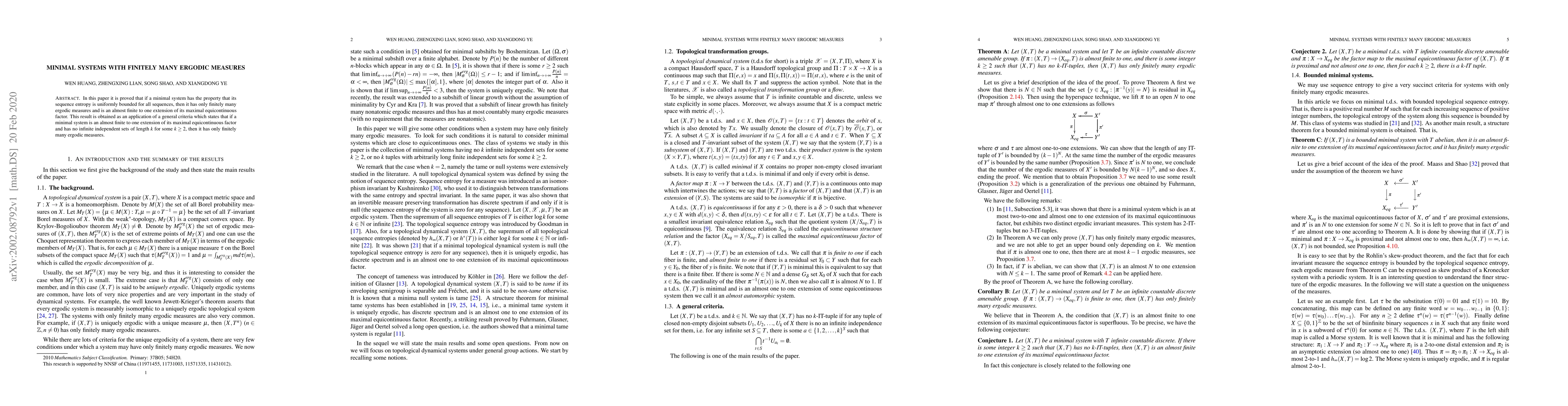 In this paper it is proved that if a minimal system has the property that its sequence entropy is uniformly bounded for all sequences, then it has only finitely many ergodic measures and is an almost finite to one extension of its maximal equicontinuous factor. This result is obtained as an application of a general criteria which states that if a minimal system is an almost finite to one extension of its maximal equicontinuous factor and has no infinite independent sets of length $k$ for some $k\ge 2$, then it has only finitely many ergodic measures.