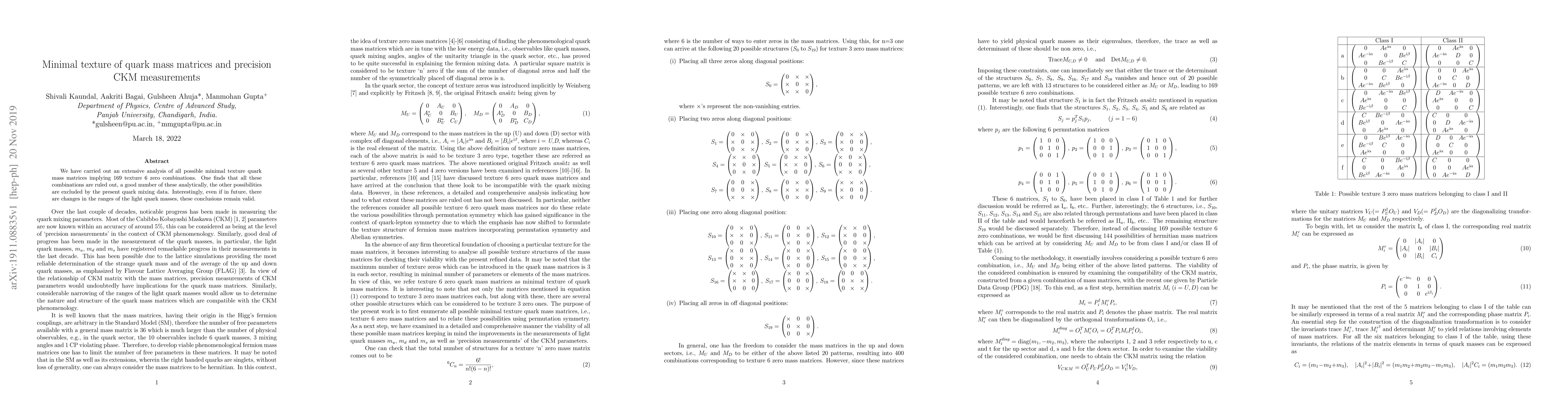 A comprehensive analysis of quark mass matrices with minimal texture was presented.