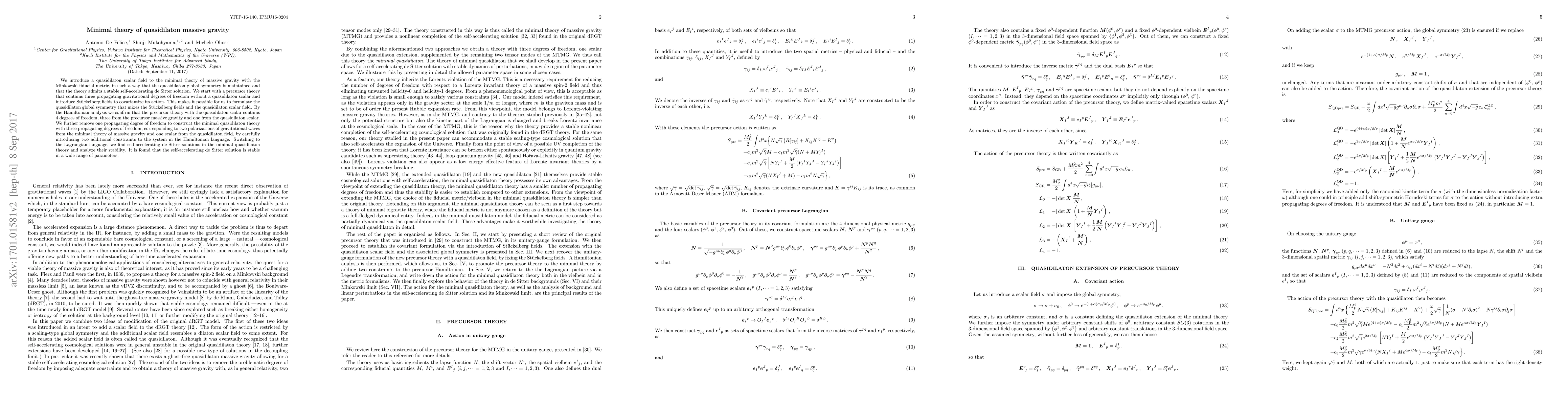 We introduce a quasidilaton scalar field to the minimal theory of massive gravity with the Minkowski fiducial metric, in such a way that the quasidilaton global symmetry is maintained and that the theory admits a stable self-accelerating de Sitter solution. We start with a precursor theory that contains three propagating gravitational degrees of freedom without a quasidilaton scalar and introduce St\"uckelberg fields to covariantize its action. This makes it possible for us to formulate the quasidilaton global symmetry that mixes the St\"uckelberg fields and the quasidilaton scalar field. By the Hamiltonian analysis we confirm that the precursor theory with the quasidilaton scalar contains four degrees of freedom, three from the precursor massive gravity and one from the quasidilaton scalar. We further remove one propagating degree of freedom to construct the minimal quasidilaton theory with three propagating degrees of freedom, corresponding to two polarizations of gravitational waves from the minimal theory of massive gravity and one scalar from the quasidilaton field, by carefully introducing two additional constraints to the system in the Hamiltonian language. Switching to the Lagrangian language, we find self-accelerating de Sitter solutions in the minimal quasidilaton theory and analyze their stability. It is found that the self-accelerating de Sitter solution is stable in a wide range of parameters.
