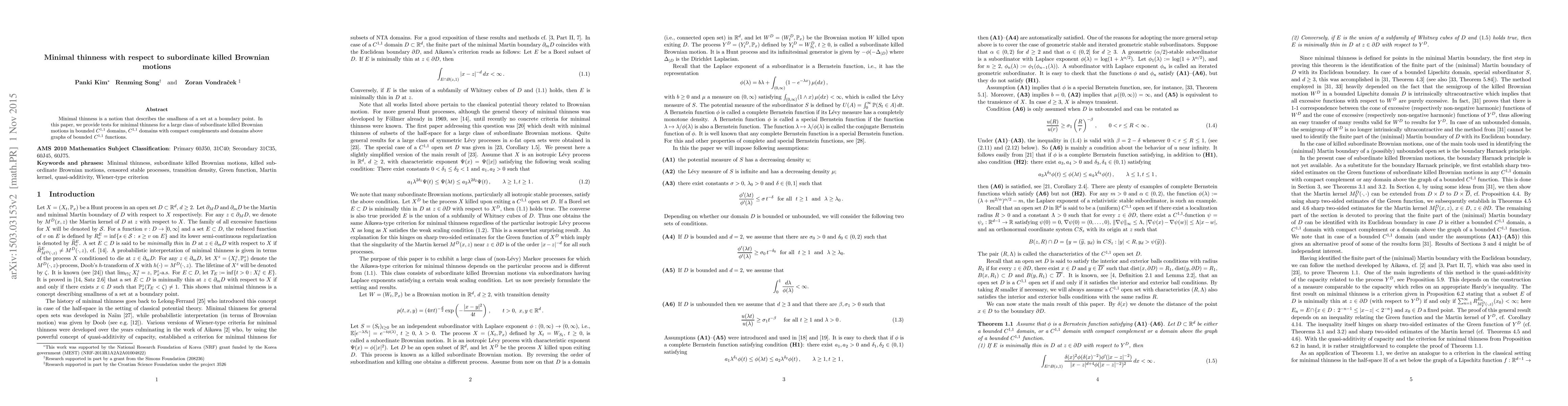 This paper develops criteria for minimal thinness in a broad class of subordinate killed Brownian motions within bounded C1,1 domains, C1,1 domains with compact complements, and domains above graphs of bounded C1,1 functions. The tests aim to determine the smallness of sets at boundary points.