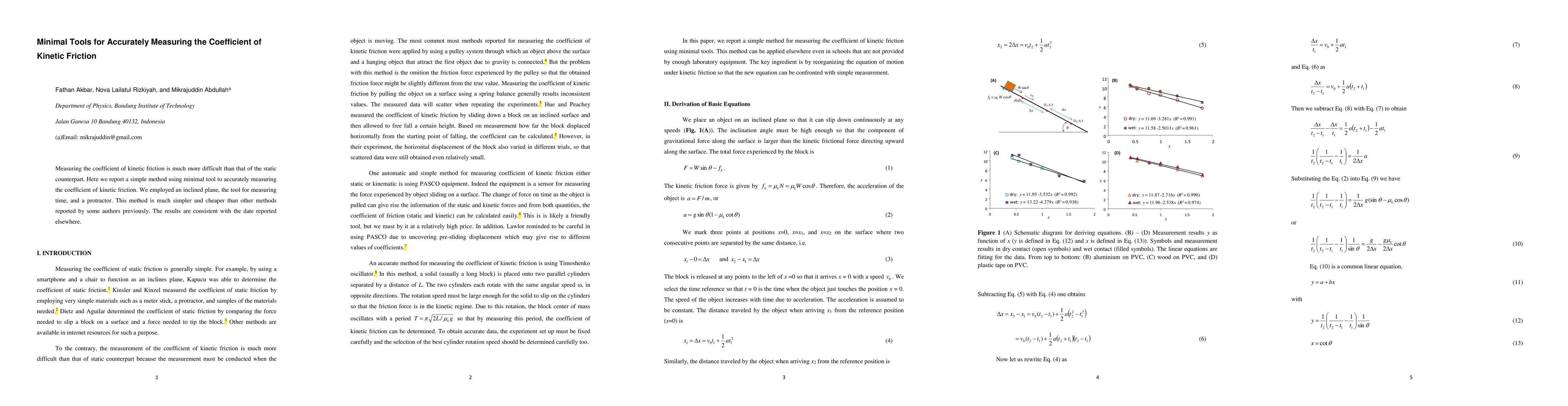 This paper presents a simple, cost-effective method for accurately measuring the coefficient of kinetic friction using an inclined plane, a timer, and a protractor, demonstrating results consistent with existing data. The proposed technique is notably more straightforward and economical compared to previous methods.