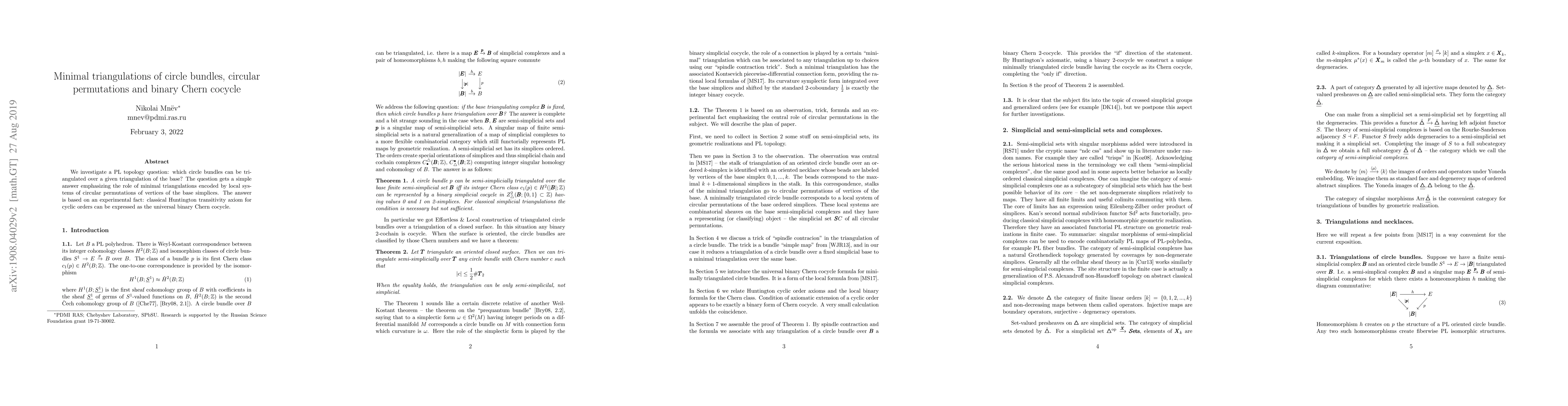 We investigate a PL topology question: which circle bundles can be triangulated over a given triangulation of the base? The question got a simple answer emphasizing the role of minimal triangulations encoded by local systems of circular permutations of vertices of the base simplices. The answer is based on an experimental fact: classical Huntington transitivity axiom for cyclic orders can be expressed as the universal binary Chern cocycle.