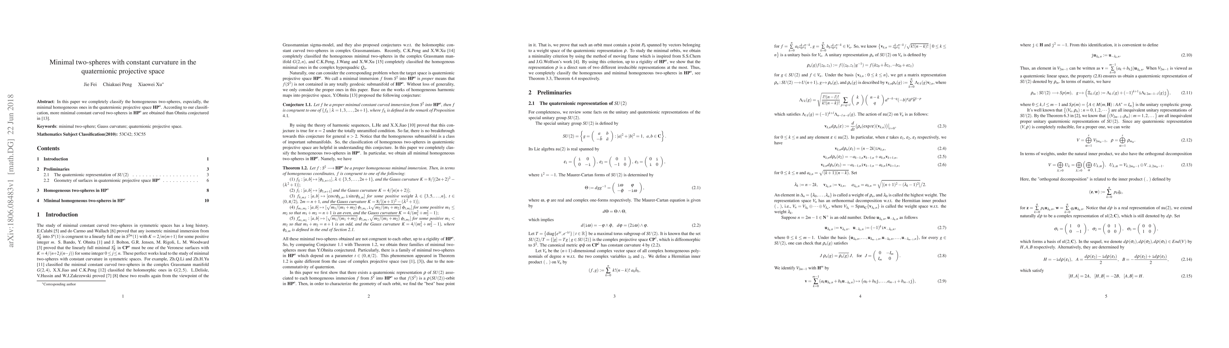 This paper classifies homogeneous two-spheres in quaternionic projective space $\textbf{HP}^n$, revealing more minimal constant curvature two-spheres than previously conjectured by Ohnita.