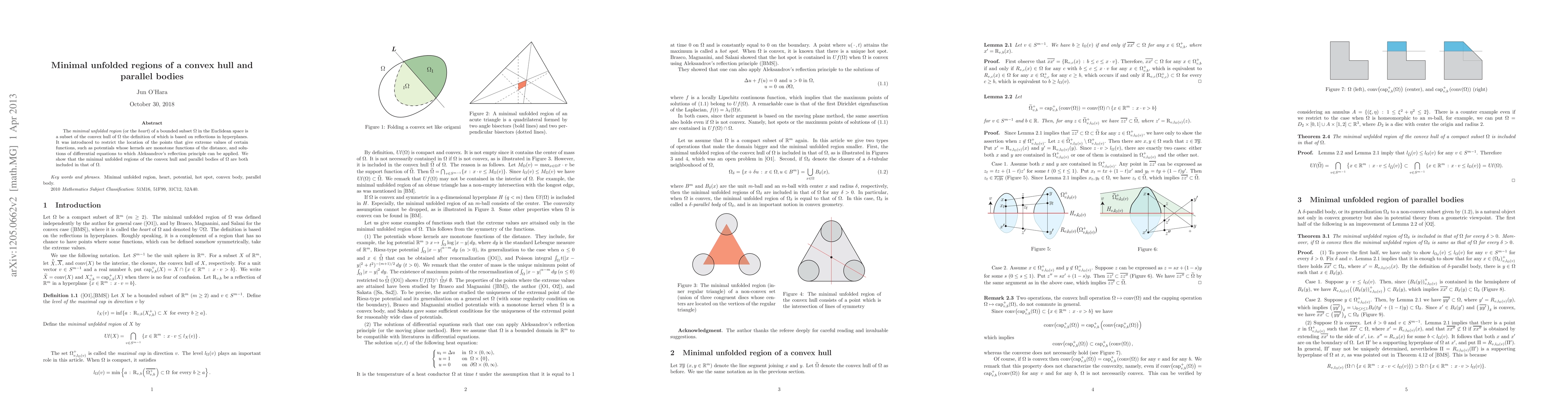 The {\em minimal unfolded region} (or the {\em heart}) of a bounded subset $\Om$ in the Euclidean space is a subset of the convex hull of $\Om$ the definition of which is based on reflections in hyperplanes. It was introduced to restrict the location of the points that give extreme values of certain functions, such as potentials whose kernels are monotone functions of the distance, and solutions of differential equations to which Aleksandrov's reflection principle can be applied. %the temperature of a heat conductor with some initial-boundary condition, in which case the points are called the hot spots. We show that the minimal unfolded regions of the convex hull and parallel bodies of $\Om$ are both included in that of $\Om$.
