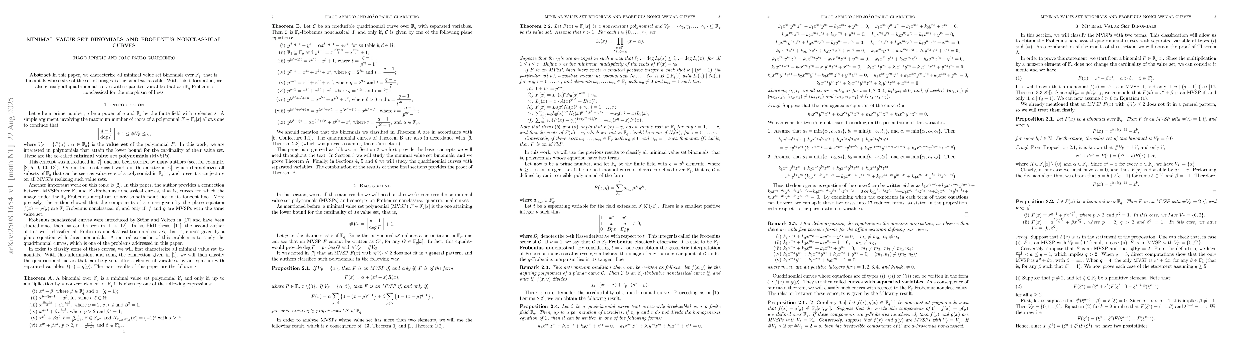 In this paper, we characterize all minimal value set binomials over $\mathbb{F}_q$, that is, binomials whose size of the set of images is the smallest possible. With this information, we also classify all quadrinomial curves with separated variables that are $\mathbb{F}_q$-Frobenius nonclassical for the morphism of lines.