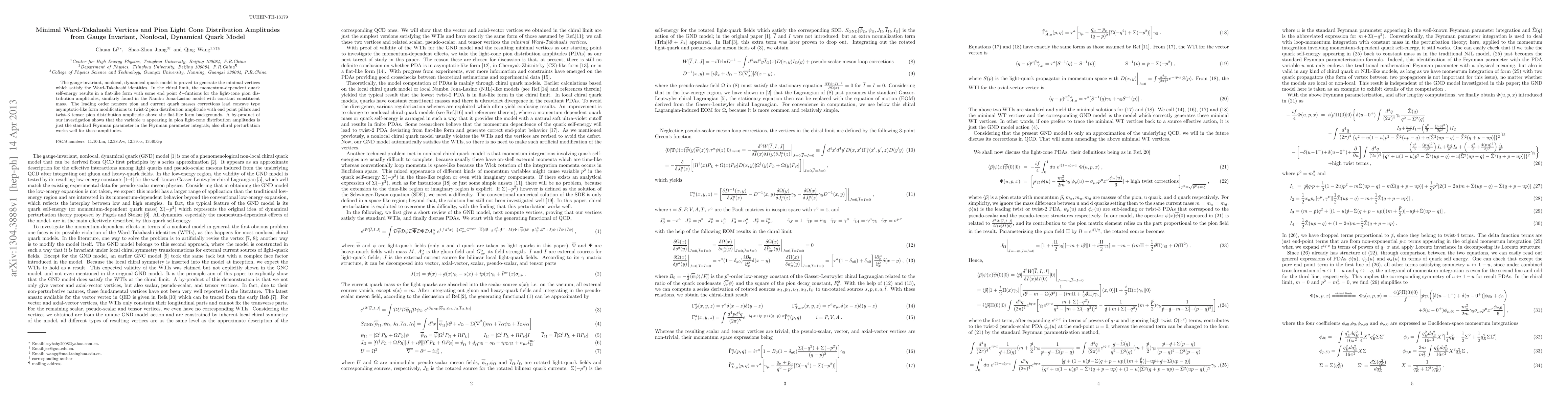 This paper demonstrates that a gauge-invariant, nonlocal dynamical quark model generates minimal Ward-Takahashi vertices and predicts a flat-like form for pion light-cone distribution amplitudes in the chiral limit. It also shows modifications to these amplitudes due to leading order mass corrections.