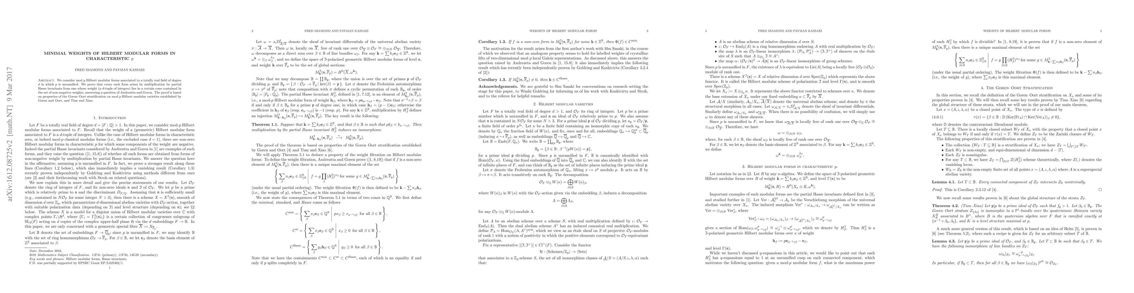Summary: This paper proves that mod p Hilbert modular forms arise from multiplication by partial Hasse invariants of a form with a minimal weight within a specific cone of non-negative weights, addressing a question posed by Andreatta and Goren. The proof leverages properties of the Goren-Oort stratification on mod p Hilbert modular varieties.