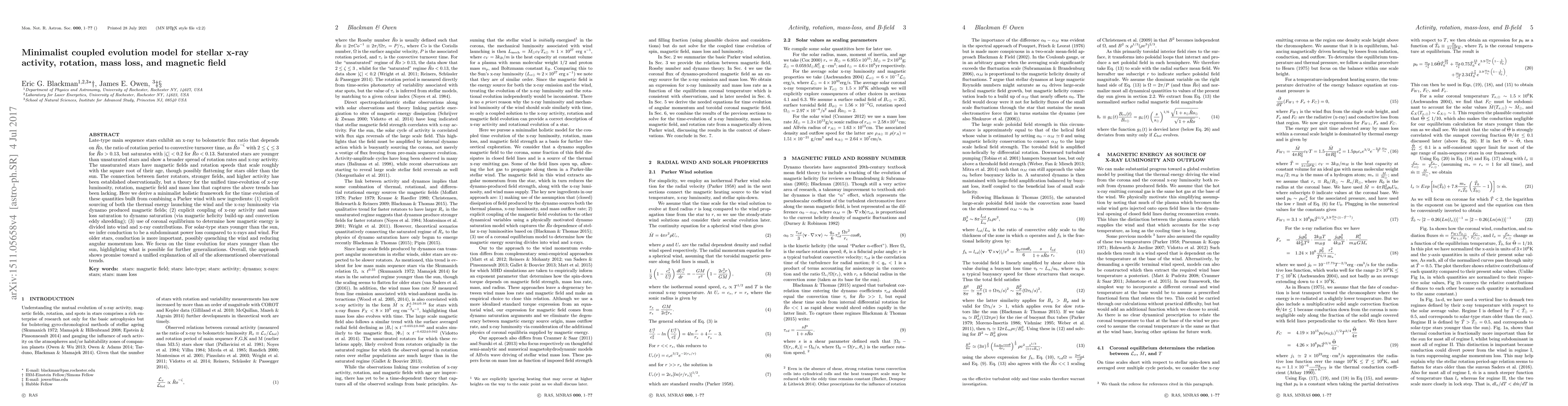 This paper proposes a minimalist model for the coupled evolution of x-ray activity, rotation, magnetic field, and mass loss in late-type main sequence stars, integrating dynamo-produced magnetic fields and wind dynamics. The model suggests that younger stars exhibit higher activity and broader rotation rates, while older stars show a more saturated relationship, potentially due to conduction quenching the wind and reducing angular momentum loss.
