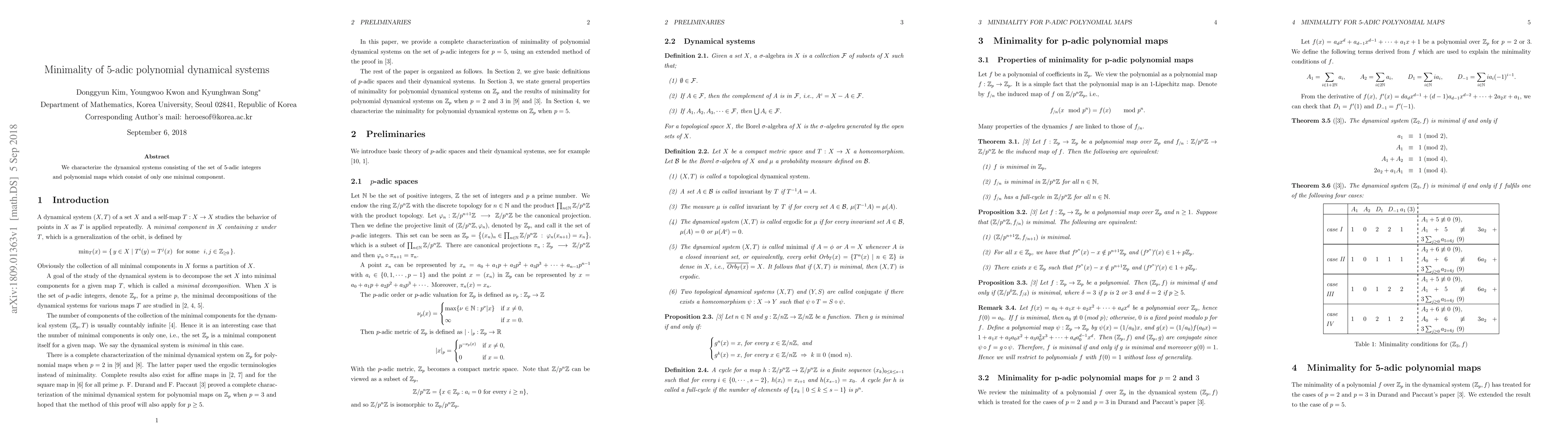 We characterize the dynamical systems consisting of the set of 5-adic integers and polynomial maps which consist of only one minimal component.
