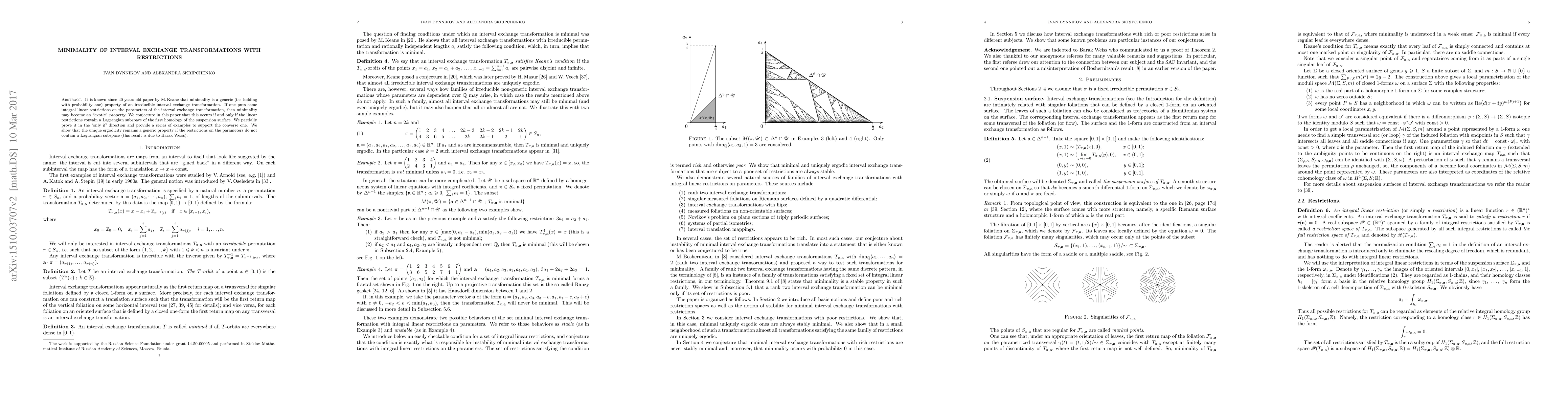 The paper employs a combination of topological and dynamical systems theory, specifically focusing on interval exchange transformations with linear restrictions to analyze minimality properties.