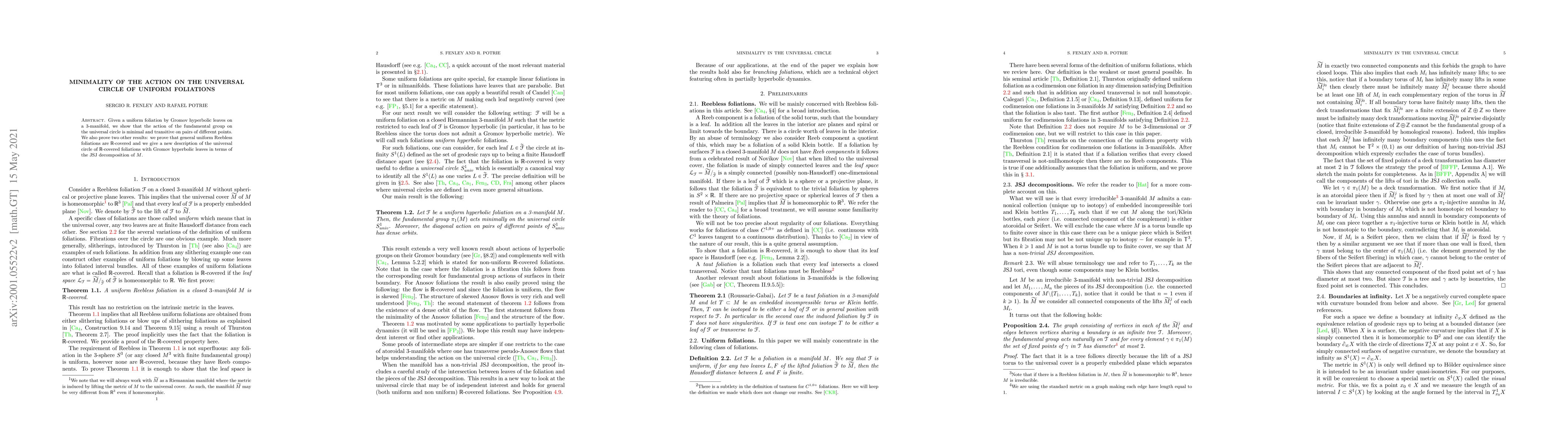 Given a uniform foliation by Gromov hyperbolic leaves on a $3$-manifold, we show that the action of the fundamental group on the universal circle is minimal and transitive on pairs of different points. We also prove two other results: we prove that general uniform Reebless foliations are $\mathbb{R}$-covered and we give a new description of the universal circle of $\mathbb{R}$-covered foliations with Gromov hyperbolic leaves in terms of the JSJ decomposition of $M$.