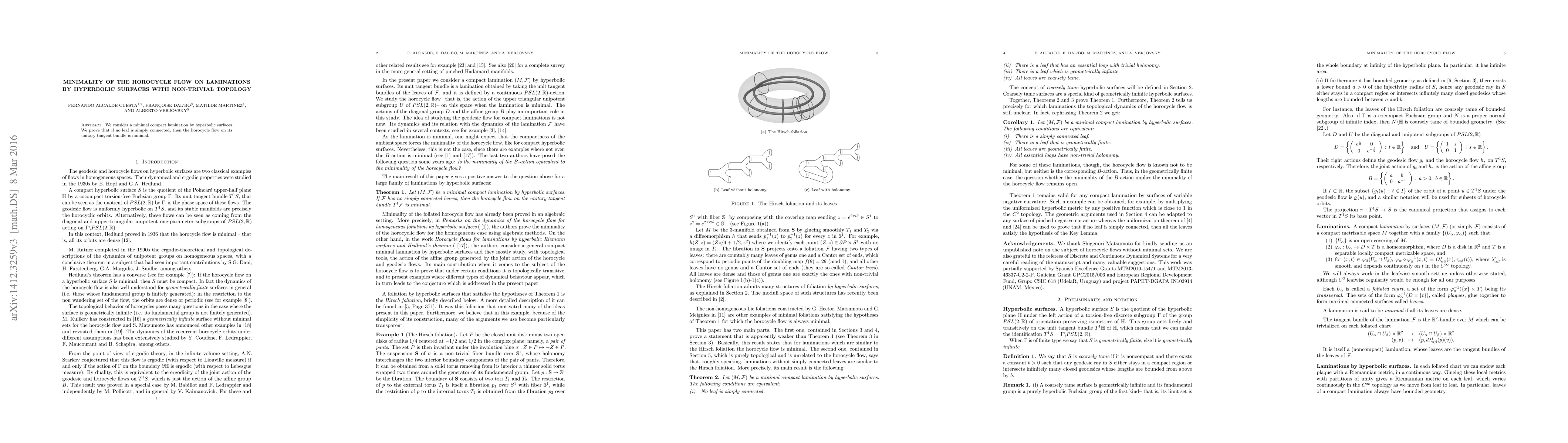 Summary: This paper proves that for a minimal compact lamination by hyperbolic surfaces with non-trivial topology, the horocycle flow on its unitary tangent bundle is minimal if any leaf has a holonomy covering that is not topologically trivial.