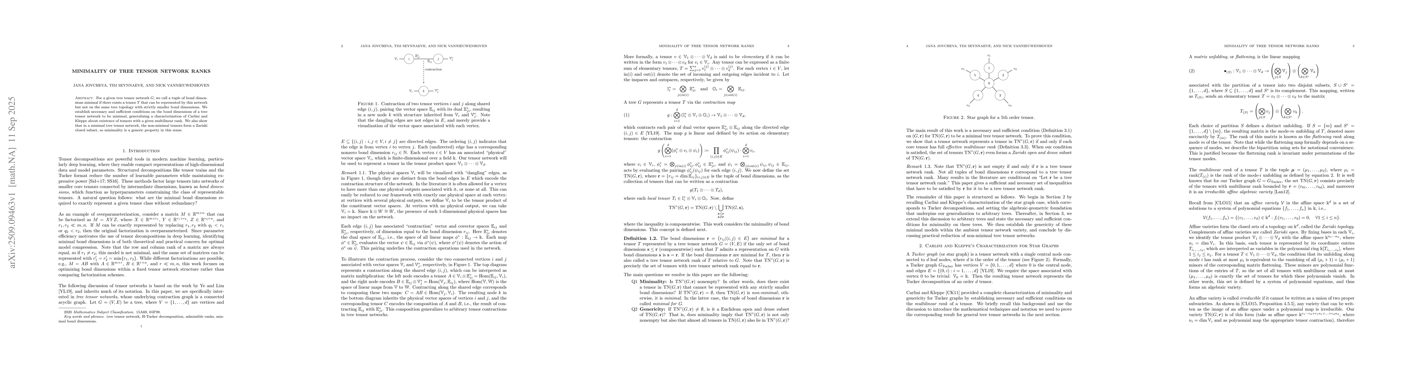 For a given tree tensor network $G$, we call a tuple of bond dimensions minimal if there exists a tensor $T$ that can be represented by this network but not on the same tree topology with strictly smaller bond dimensions. We establish necessary and sufficient conditions on the bond dimensions of a tree tensor network to be minimal, generalizing a characterization of Carlini and Kleppe about existence of tensors with a given multilinear rank. We also show that in a minimal tree tensor network, the non-minimal tensors form a Zariski closed subset, so minimality is a generic property in this sense.