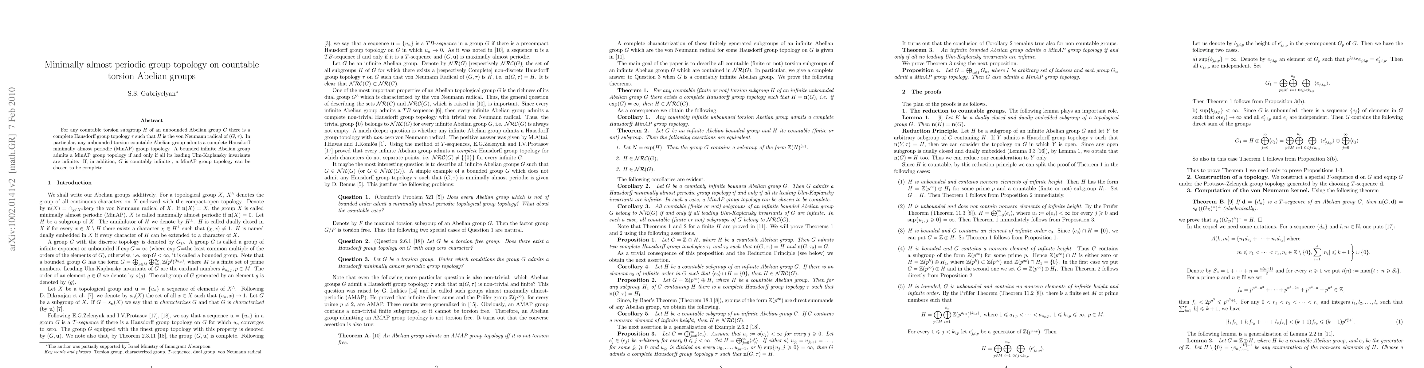 Summary: This paper establishes the existence of a complete Hausdorff minimally almost periodic (MinAP) group topology on any countable torsion Abelian subgroup of an unbounded Abelian group. For bounded torsion countably infinite Abelian groups, a MinAP topology exists if and only if all its leading Ulm-Kaplansky invariants are infinite, with the topology being complete in this case.