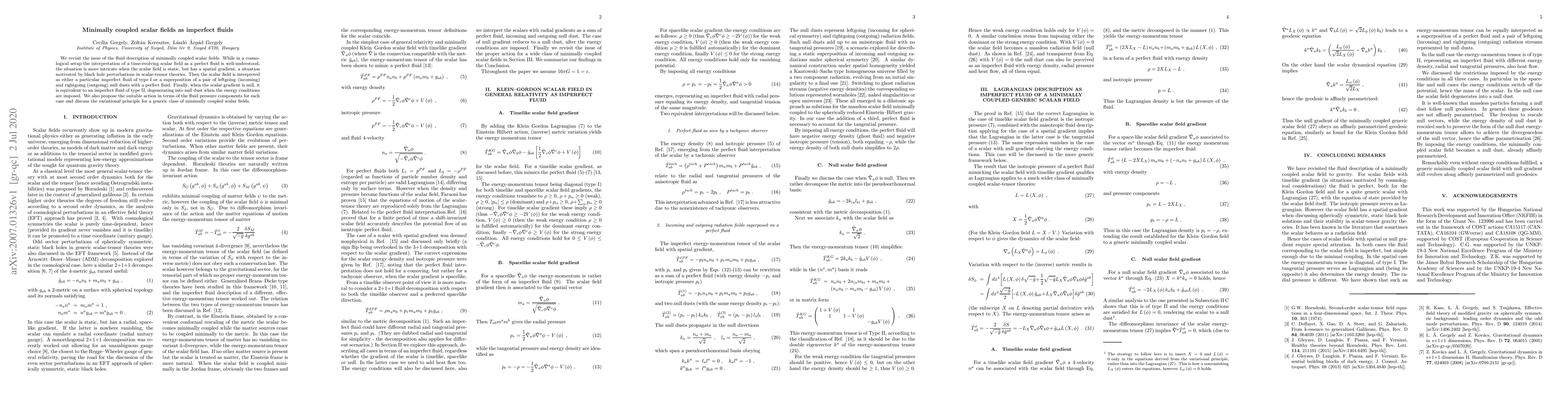 Research on minimally coupled scalar fields reveals they can be described as different types of imperfect fluids, offering new insights into their behavior in cosmological settings and scalar-tensor theories.